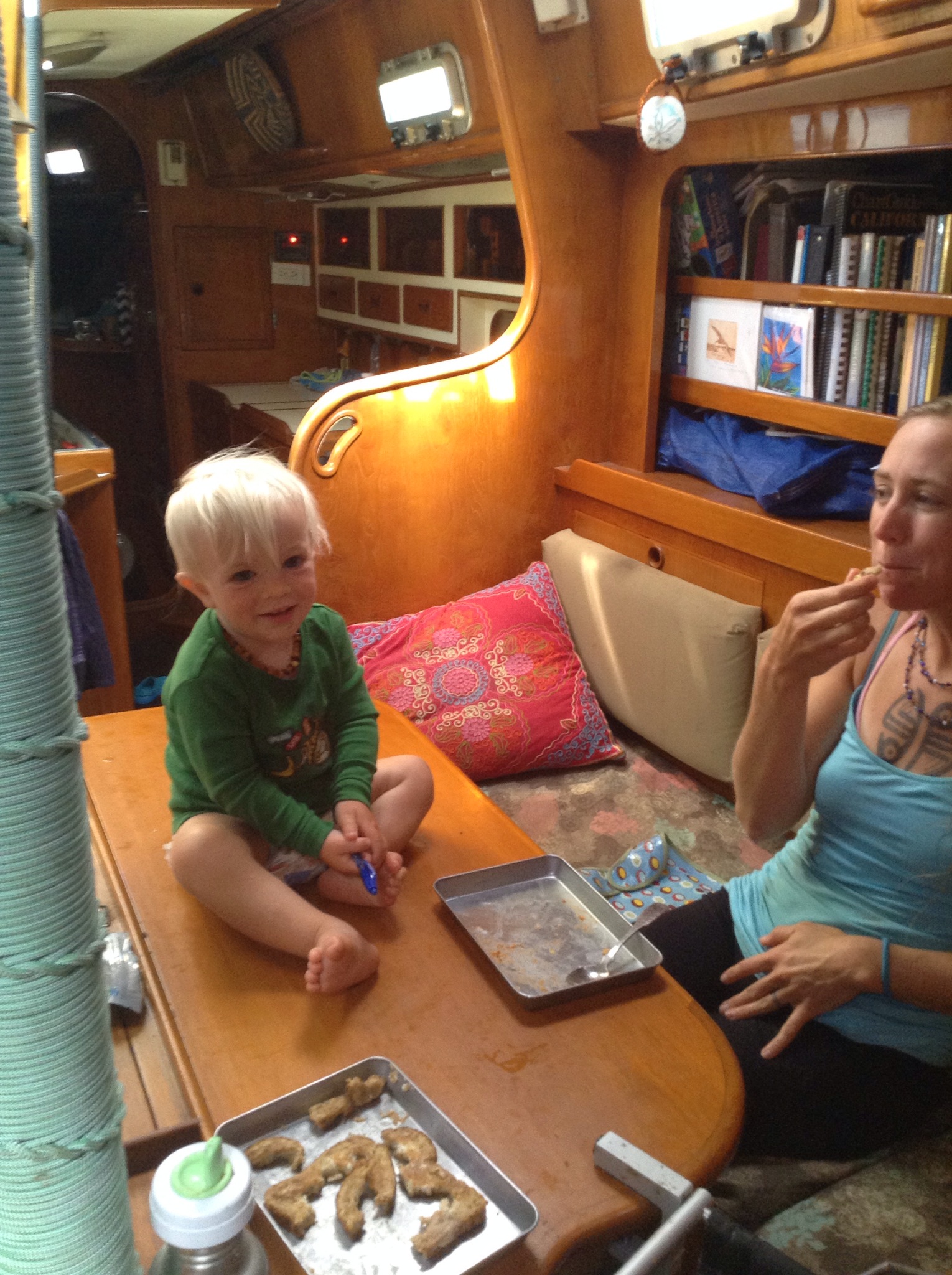 Taj doesn’t quite get table manners yet… But how much do we really mind our manners on our boat anyway?! Actually , for the most part we are pretty good about it while at port. Underway, our laps become our tables and frankly we eat when we can and snack often to avoid sea sickness. Taj still has some time to learn that sitting on the table is not cool. So in the mean time, you can all get a glimpse of what eating looks like aboard Shawnigan and hopefully have a little laugh.