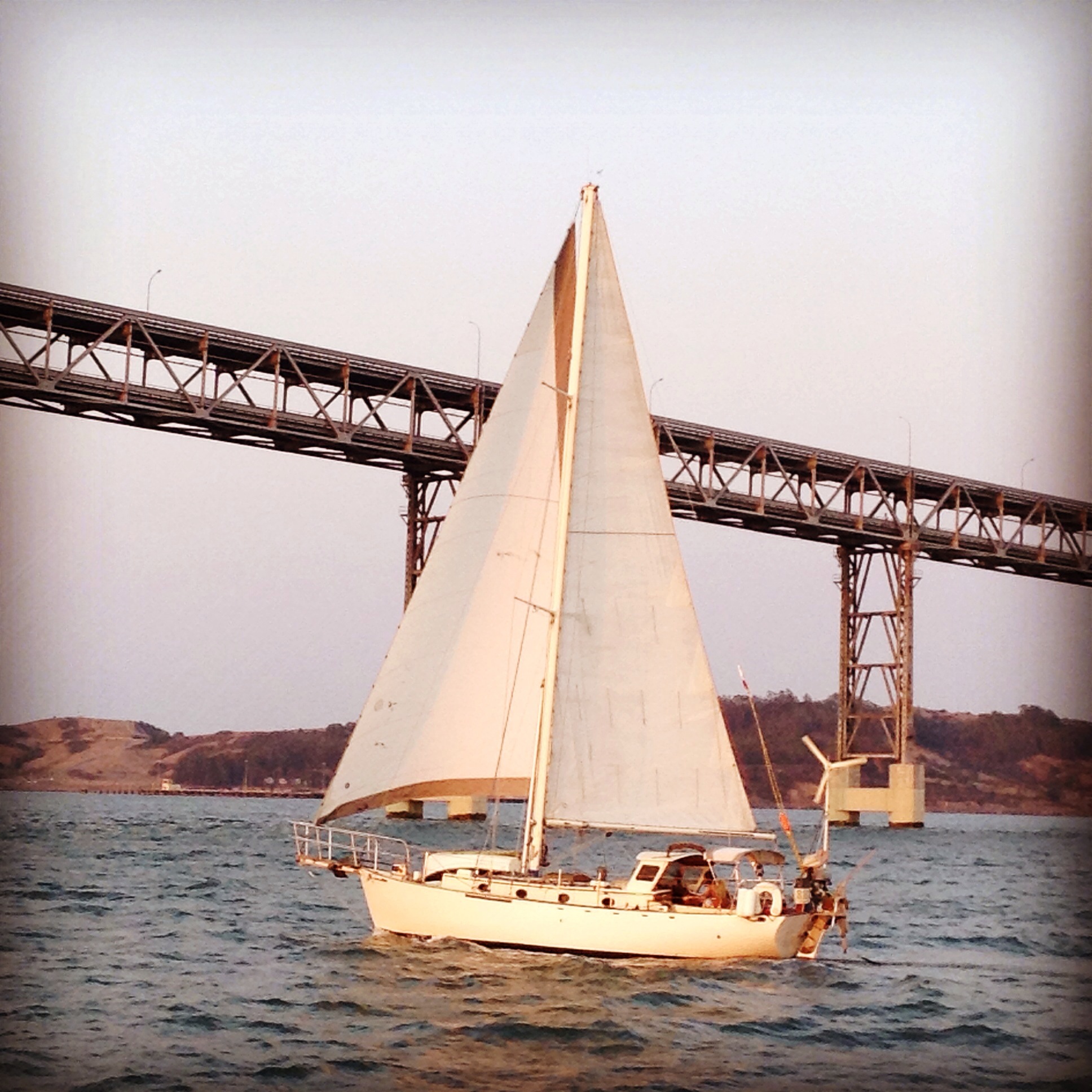 This past weekend was the 40th annual Cleat Cruise. The destination has not always been China Camp, but has been for the past many years. After a day sail from Richardson Bay, or other Bay Area ports, many drop the hook for the day and night and some for the whole weekend. During the Saturday evening BBQ and potluck the “cleat” gets passed to the next person. The winner is picked by a drawing and given a plaque to keep for the next year. It is that person’s responsibility to organizing the next year’s Cleat Cruise.