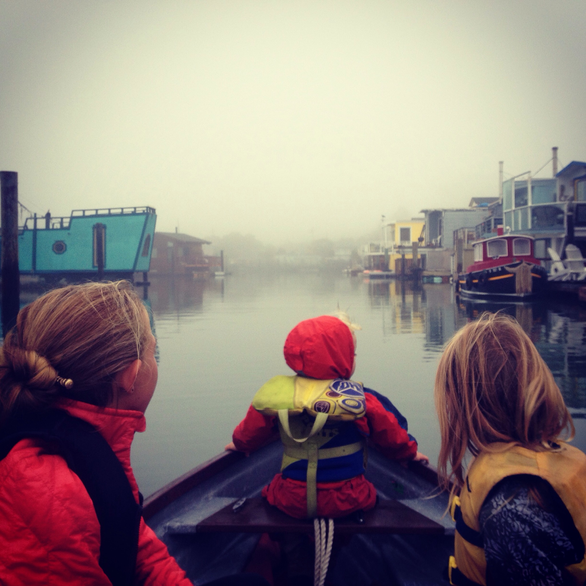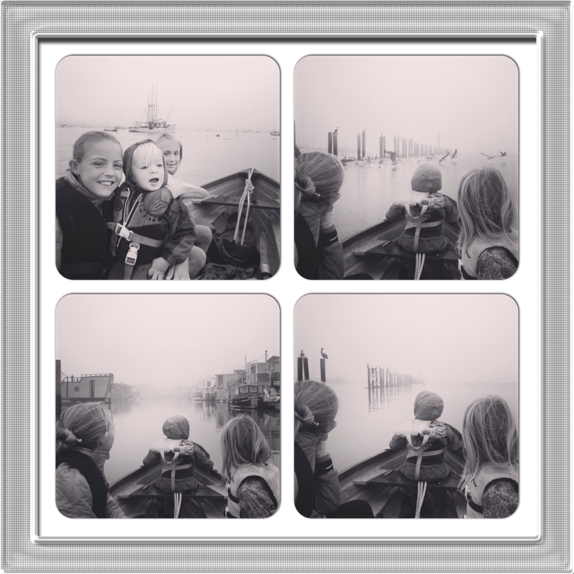 Currently the kids are going to a Rudolf Steiner model school called The New Village School. On most days we ride bikes 1.4 miles each way, but lately our mode of transportation of choice is via dinghy. Yesterday was so mystical. The fog was thick and all the birds were out fishing for herring. What a beautiful way to start the day.
