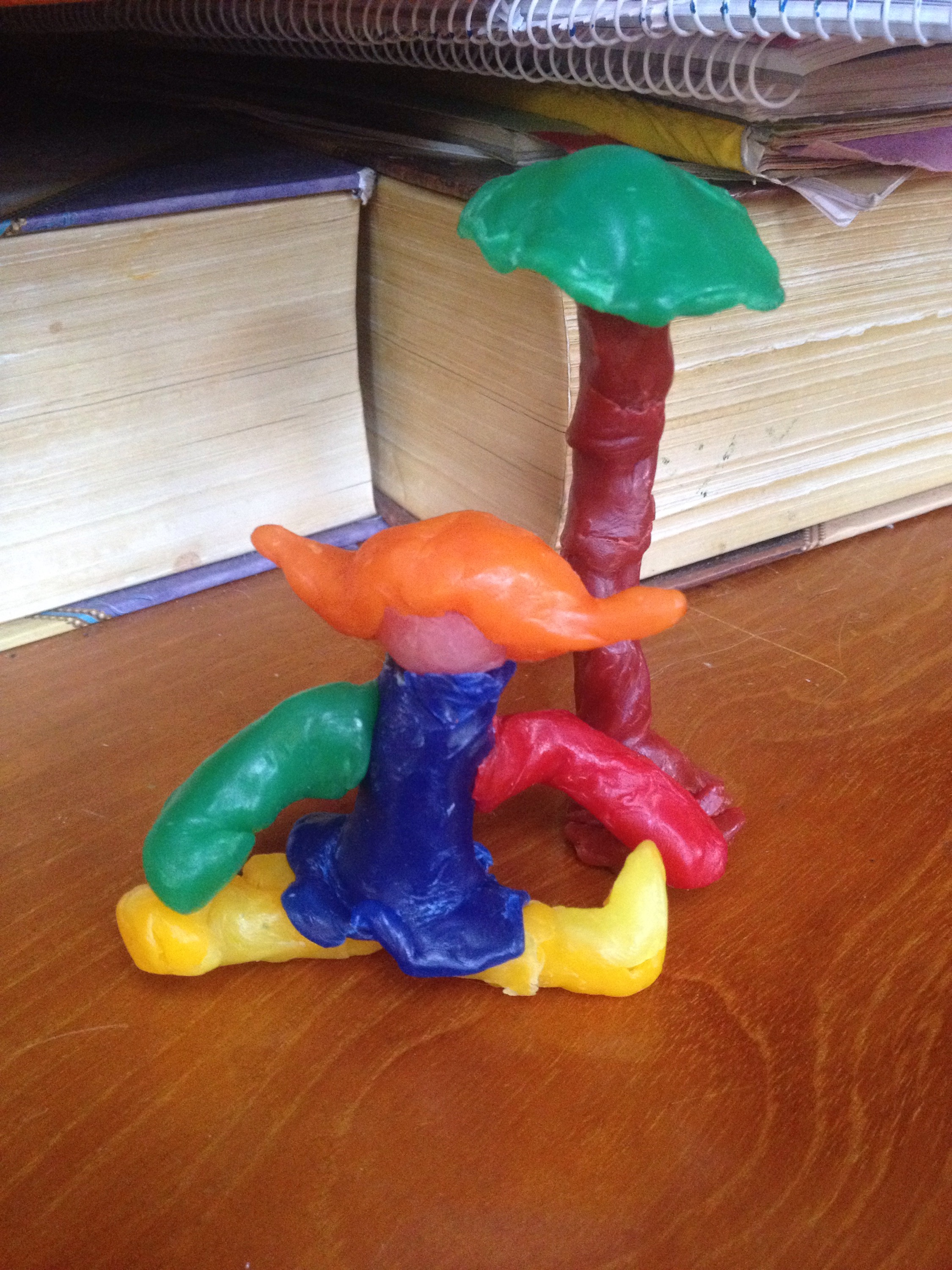 We bought modeling beeswax for the kids. It’s small, reusable, and great for learning and fostering the imagination. Nina made Pippi Langstrumpf (Pippi Longsticking)! And Ellamae made a tree for her to sit under.