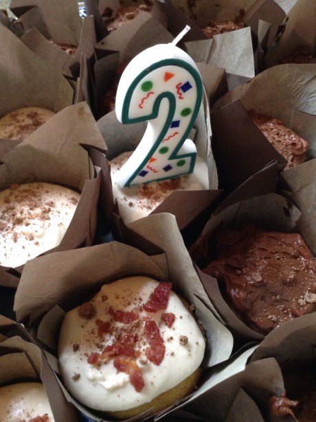 Paleo Maple Cupcakes with Chocolate “buttercream” frosting and Maple Bacon frosting. Taj’s first cupcake and he LOVED it!