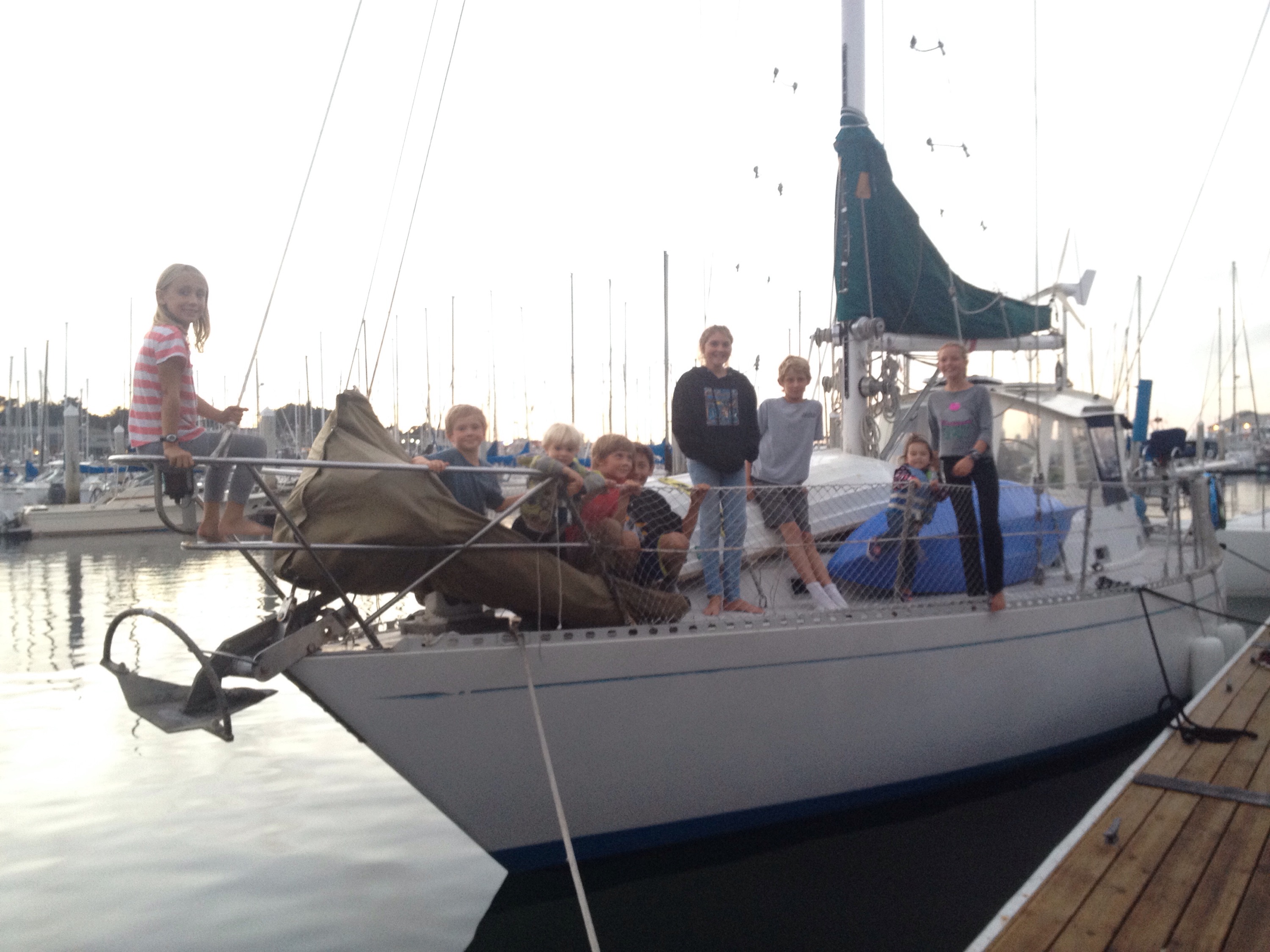 9 kids tromping around the boat in Monterey. 5 of them were Dr. Keller’s grandchildren (3 of which are Holly’s) and 1 is miss lil Naia. The girls are learning to make insta -friends.