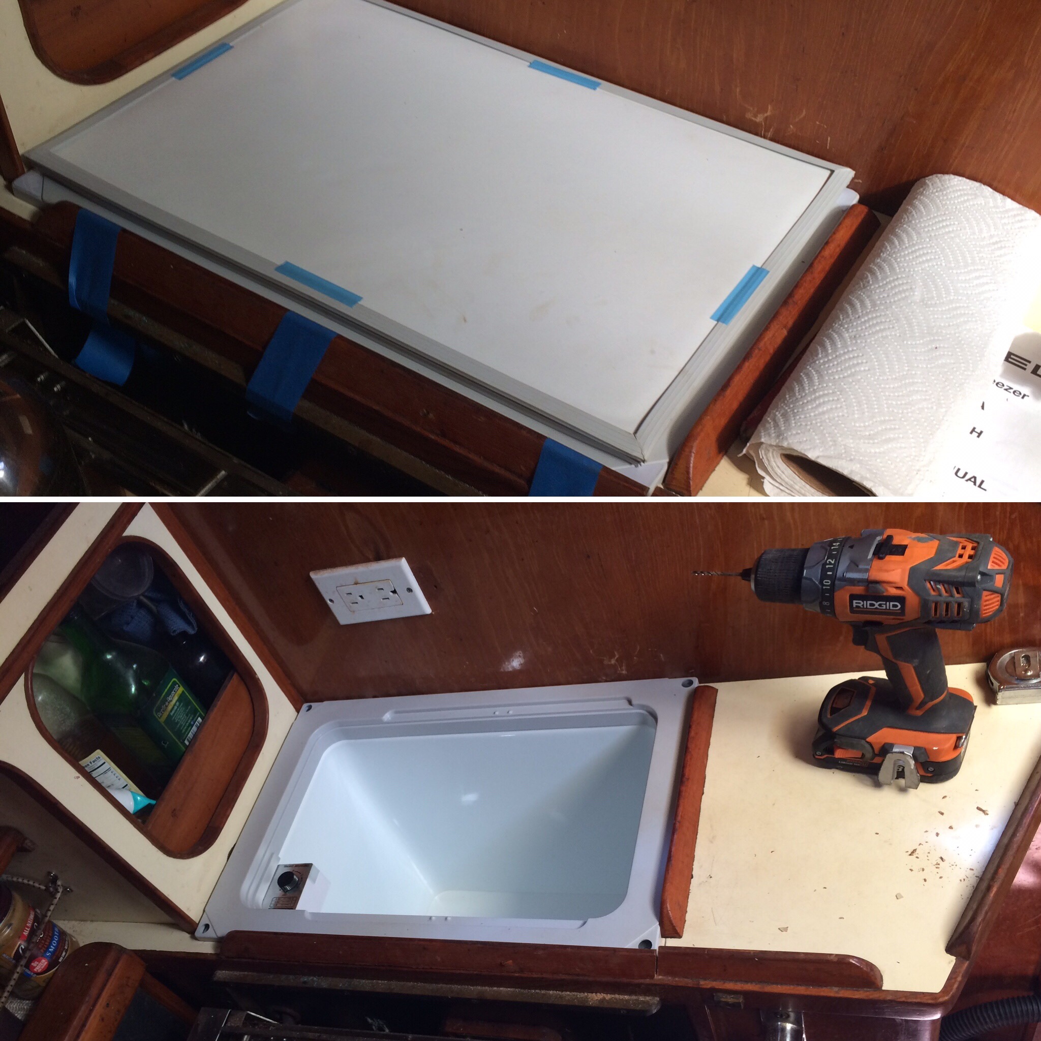 A FREEZER!!! Engel MB40V-H 12/24V DC drop-in fridge-freezer – with attached compressor We are soooooo excited to put this fridge/freezer in. Its one of those “we don’t need this, but we have the perfect place for it, the money, and the solar power to run it, so why not?”