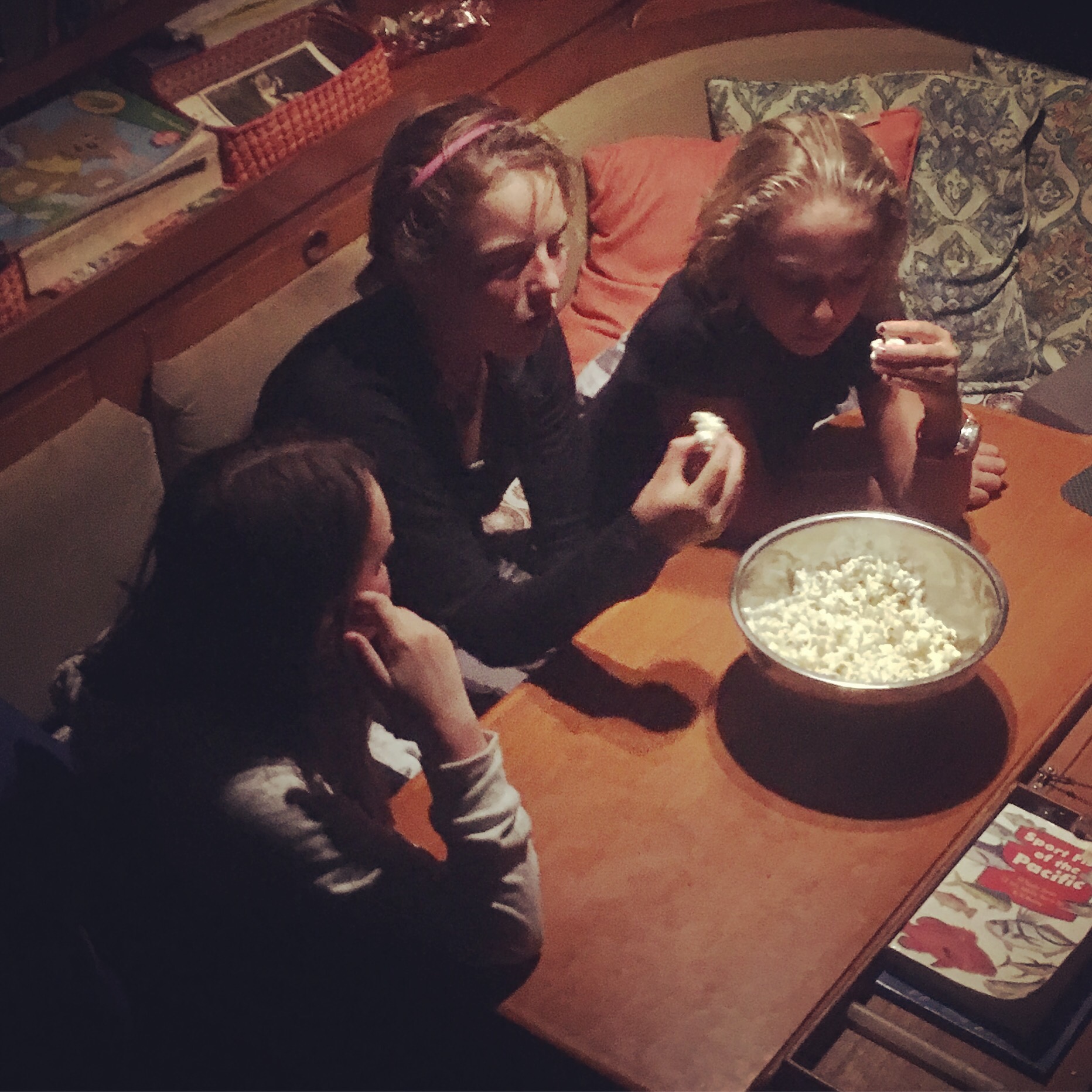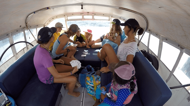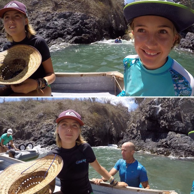 We went to Secret Cove with our boat friends on Scavenger and Luna Azul. Christian and the men from the two other boats got some surf in. I was happy just to be out anchored somewhere new. Last year there was a 8-10 ft crocodile who was sighted many times there without any incident of hurting people. No one reported seeing him this year, so we swam. Taj jumped off the bow polepit for the first time! Ellamae helped scrub the waterline on the boat. We spent time picking urchin out of Scotty’s foot. Tip: hot vinegar soak alternating with dripping melting beeswax on each spine. It’s a good thing we have a lot of beeswax on our boat. This has come in handy a few times already.