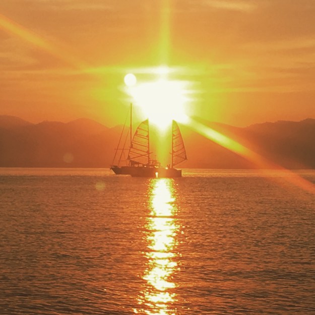 The sail up to Chamela was nice. A sail off the hook and back on the hook day (meaning sailing off the anchor without starting the engine and then setting the anchor using only sail power). Love those no engine days. We did see some gusts of wind in the low 20’s, but our boat handled it well. We arrived before dark. Buddy Boating up the coast with us was Empyrean, Cat2fold, Mango Mango. Mango Mango kept heading north to round Cabo Corrientes while the rest of us spent a few days having fun in Bahia Chamela. We went to the bat cave again thanks to Cat2fold shuttling us on his boat. Some more swimming of course. And finally, we got to go see Brian and Cat2fold sing and play guitar at Scuba Jazz Cafe. He plays there regularly during the season on Friday nights. Scuba Jazz is a must if you’re cruising through Punta Perula.