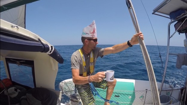 The second day’s wind backed off a bit but kept us moving strong. Then the wind died off to almost nothing. Based on the weather files, wind was just ahead and if we caught up to it, hopefully we could keep it all the way through. Well, that plan didn’t work completely. We did motor for about 4.5 hours and did catch some wind, but it didn’t hold for long. Our 4th day out, we lost all wind. We literally drifted, bobbing back and fourth for a good 12 hours. During that time we managed to make it 6 miles, thanks to the NNW current. We did keep a westerly track, but it also took us back north a bit. We took this lag time to clean up the boat, inside and out. Christian hopped in again and cleaned the bottom in preparation for the clean bottom requirements of the Galapagos.