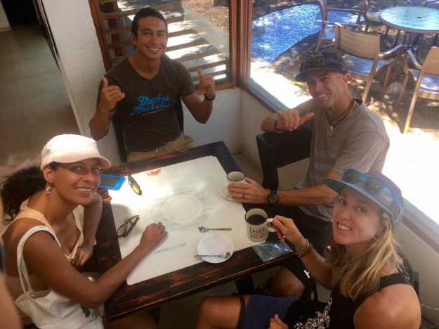 The next morning, April 11th, our morning coffee during sunrise was beautiful. The sun came up soft and warm, and the sky turned from pastels to a bright blue. The town had a look of a little village in the Mediterranean. We were excited to get to shore. Santa Cruz is the most populated island of all the Galápagos Islands. The town of Puerto Ayora itself only has 2,000 people, but that does not account for all of the tourists and the nearby villages. It was Tajs 5th birthday and we were all excited to wonder town and find a place to get a birthday treat to celebrate with.