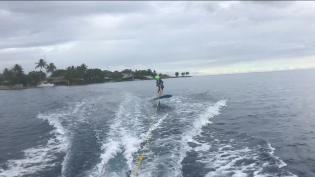 Taj (at 5 years old) being towed behind a dinghy on a hydrofoil. Thanks Jeremy with starboardSupNZ !