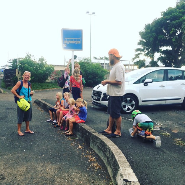 Kid boat meet up at the park near the marina in Pape’ete. Kids from S/V Today, S/V Coastal Drifter, S/V La Cigale, us (S/V Shawnigan), S/Y Panacea and S/V Manuia