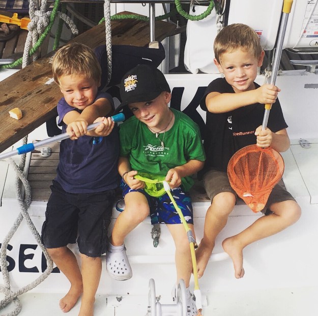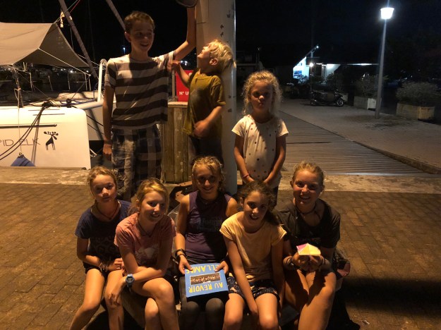 S/V Alondra kids, S/V Bajka Kids, and Taj at the office in Marina Taina.