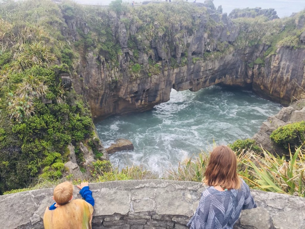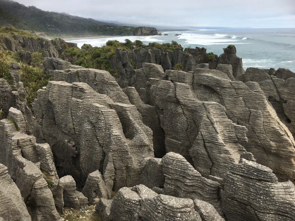 Then we drove down to Hanmer Springs, where we stayed over night and went to the spa and resort water park. Then on over to Arthur’s Pass where we stopped by Castle Hill Rocks (another Lord of the Rings and Narnia scene), Devils Punch Bowl Falls and lookouts with overly friendly Kea birds. From there we drove down the West Coast to Franz Josef Glacier, back up the West Coast through Greymouth, and Pancake Rocks and then up and over to Nelson. We even fit in a sailing trip with our friends on their Wharram catamaran out of Elaine Bay in the Marlborough Sounds. From Nelson we drove both car and Sharkie to Picton to hop on the ferry back over to the North Island.
