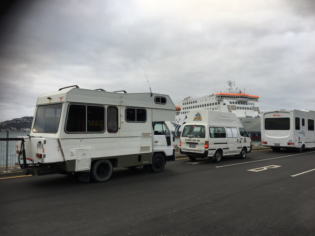 Now for the big adventure: The South Island camper trip. My mom and brother had planned to fly out for a visit, so we planned it to where Ellamae flew back with them. As their tour guide, I thought it best to have them start their visit on the South Island. Since we had the NZMCA discount for the ferry, we ended up taking both the camper and the car over from Wellington to Picton. With both vehicles there we had a place to sleep and a car to drive everyone around in once Mom, Phill and Ellamae arrived. They planned to fly into Nelson, so we planned to arrive a few days early to get a head start on exploring. I am sad to say that Nina was gone for this one too, as she was still having fun in the US visiting Auntie Tara and family.