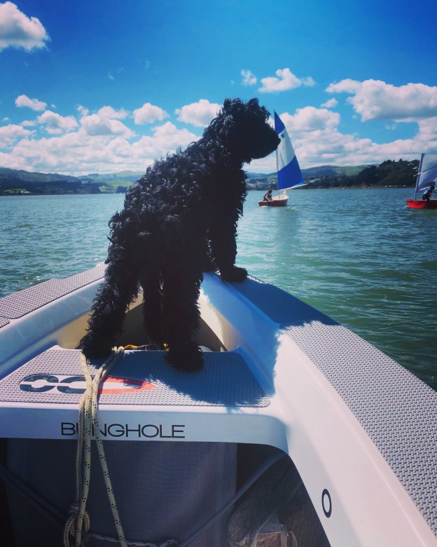 When the holiday came to an end, we picked up our new dog Tūī  and brought him back to the boat.
