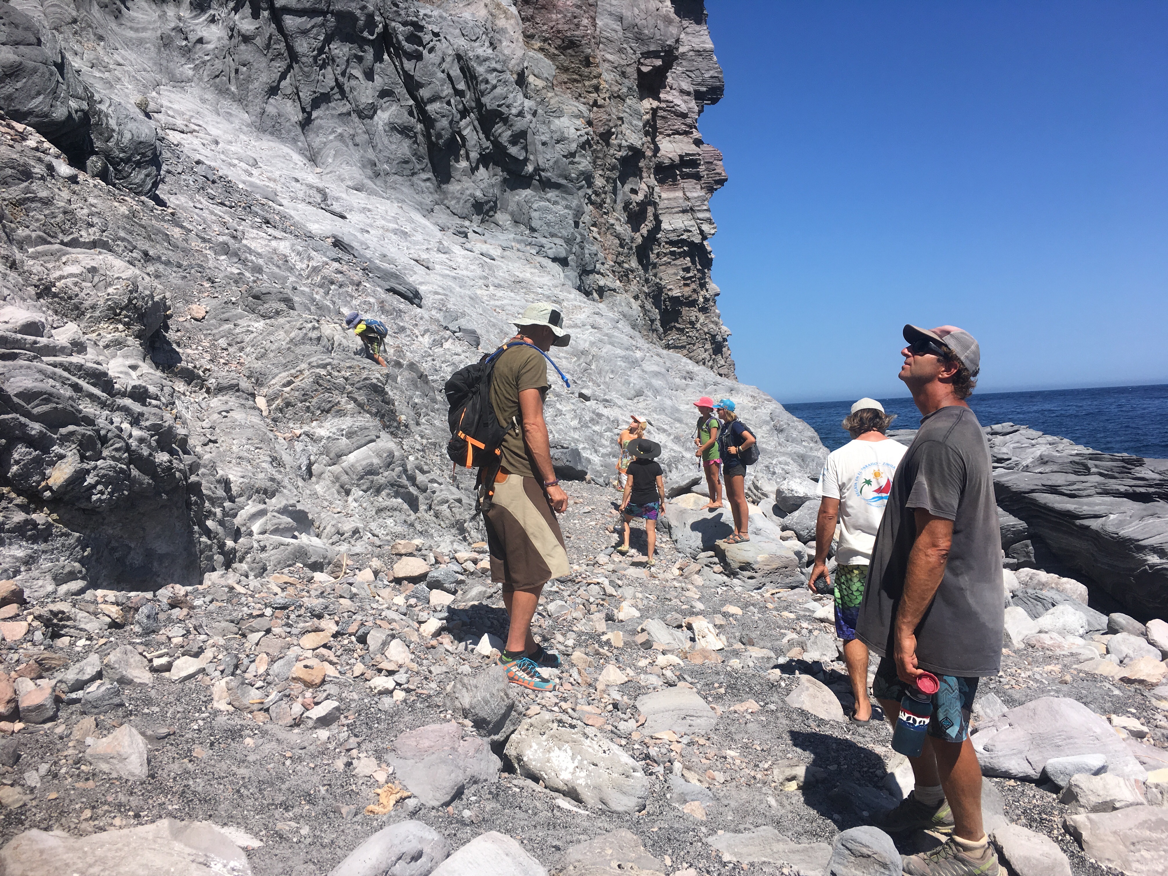 The reward waiting for us when we returned to our dinghies on the beach was a dip in that cold water. Nothing felt more satisfying after that strenuous hike on a hot day over that hot dry rocky terrain.