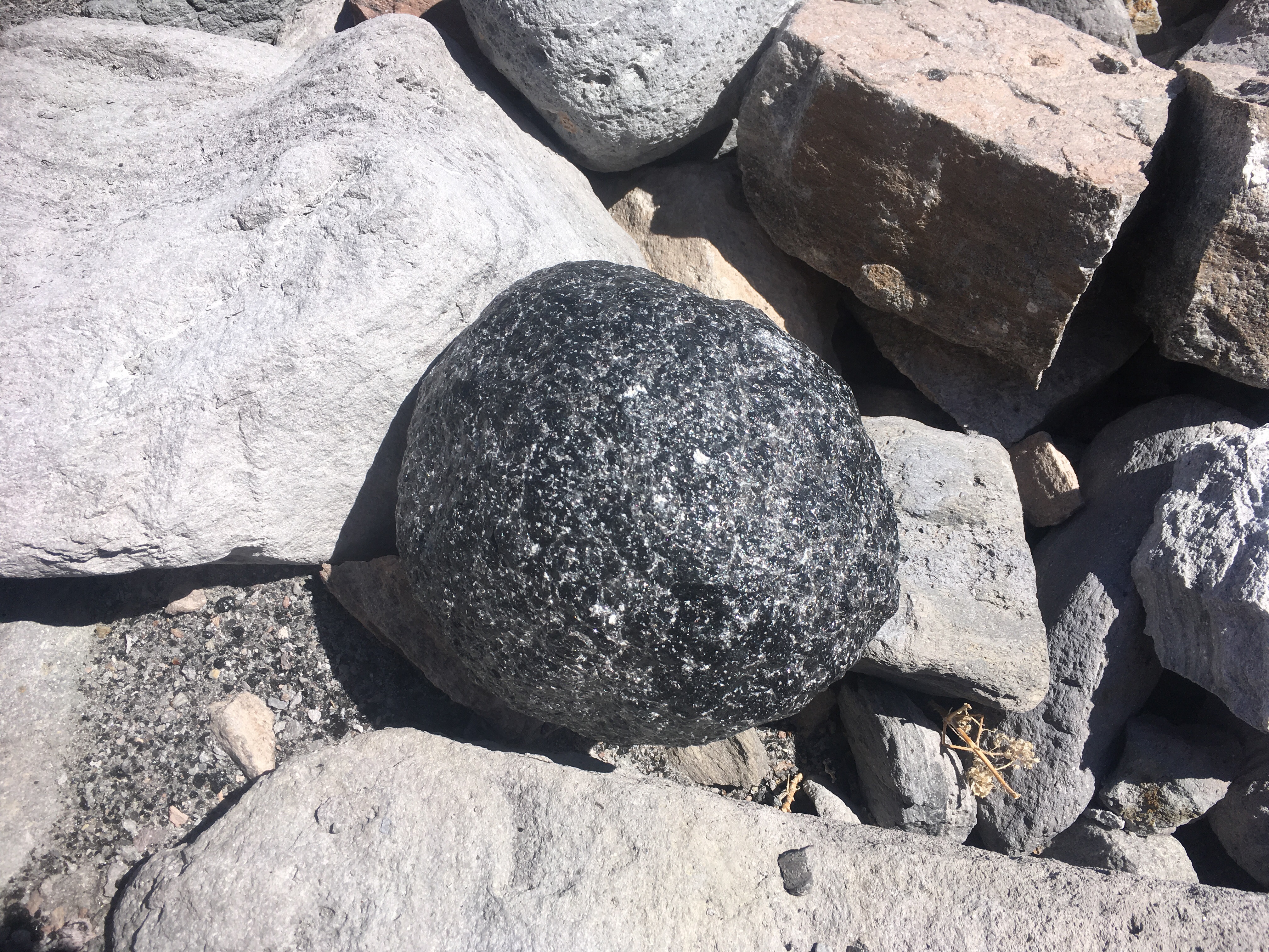 The south end of the point was too exposed to the prevailing wind, so we went around to the north side and set anchor at San Antonio (proper) 26.533917, -111.477790. We all met ashore, soon after anchoring, to get a hike in before evening set. Another perfect geology lesson for boat-school life. Getting to the road was an adventure. We bushwhacked our way until we finally found the road/trail. Not so fun with all of the prickly brush and cactus to avoid. Before climbing the peak, we first hit up the obsidian vein. Black, grainy and shiny at the same time, the vein looked like a petrified waterfall and surrounding us, looked like petrified water droplets that had misted to the ground at our feet.