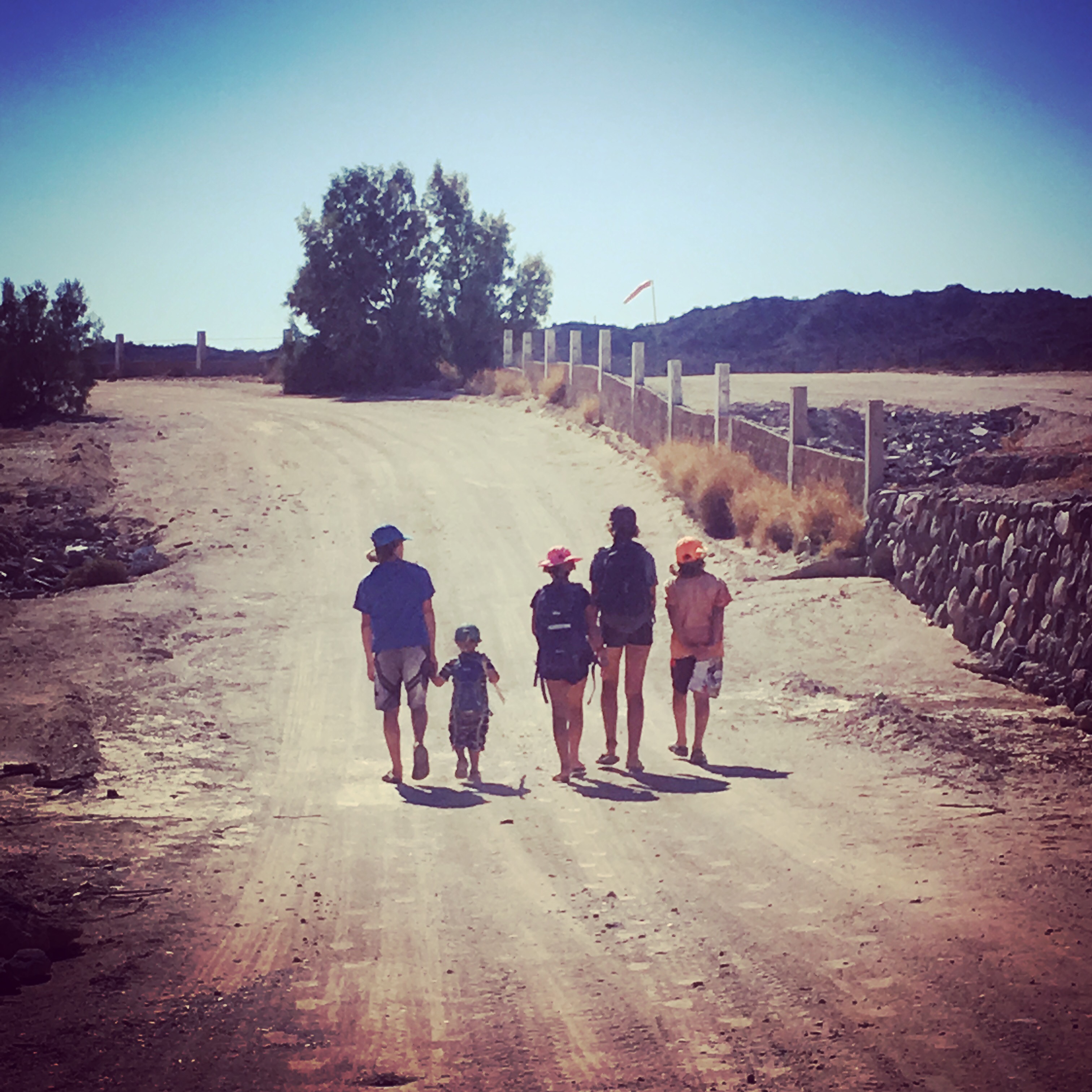 The next morning we motored an hour over to Mulege 26.906125, -111.954573 to go to shore and re-provision. We anchored in about 15 feet of water on a “roadside” anchorage. Our time was limited, as we knew that the regular wind would be picking up around noon. We found a few tiendas (small grocery store) to stock up at, a park to play in, and an ice cream shop to treat the kids with. Ice Cream is ok at 10 in the morning when you’ve walked 2 miles to get to town, it’s hot, and the last time you had it was in La Paz, right?!