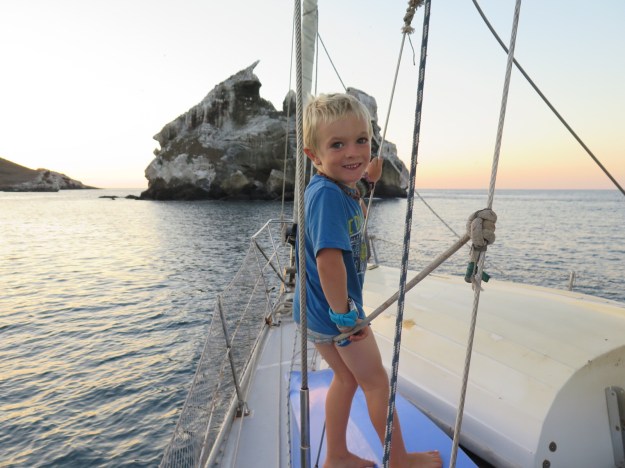 We sailed off the hook from the east anchorage on Isla Isabel and headed 330 * North toward Mazatlan. With about 90 miles to travel we planned an overnight passage. We drifted the first 3 hours. Then the wind barely filled in, but enough to commit to sailing on. Early afternoon, the wind picked up to a more steady 4-8 knots out of the NW. We saw tons of sea turtles. By nightfall we’d barely gone 25 miles, but the wind kept up. Over the night there were a few drifting moments, but for the most part we had enough wind to cover 40 miles. The wind slowly switched out of the west and even the south for a little bit. We saw more sea turtles the next day, probably a total count of over 40. On the way in to Mazatlan we were cruising with winds up to 12-15 over our port beam. We dropped the hook on the East Side of Deer Island @ 1600 on May 6th. 2314.238 N , -10627.679 W