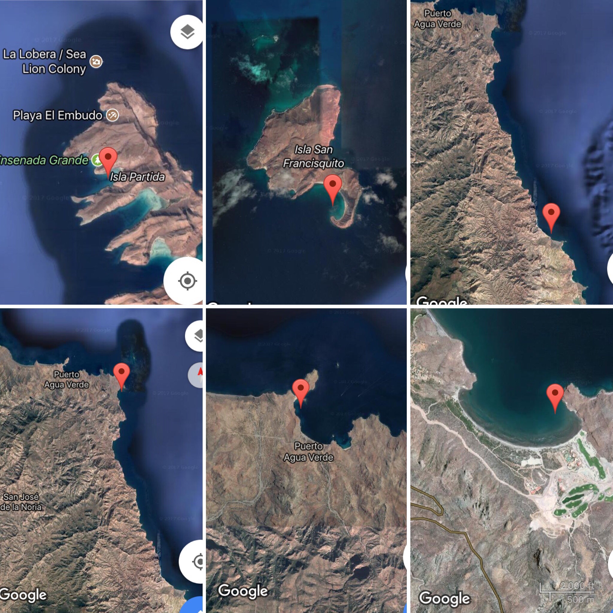 Thankfully the next morning, Christian woke up feeling better. We set for a 10 mile sail for Bahia Candeleros. Another great day of sailing off and back on to the hook. We found ourselves anchoring in Candeleros with only a few with other boats, one of which was our friend John on SV Summer. Candeleros is known for its beachfront resort with day passes and wifi access. Word on the street says that they have gotten progressively uptight about letting cruisers come in and use the facilities. We chose to bypass these amenities this year. Truth be told, even if we wanted to partake in the resort luxuries, the wind was howling out of the west and straight into the anchorage. Needless to say, we were not leaving the boat for any reason, except to swim when there was not any wind during the early daytime hours.  In the morning, we did snorkel. The water was quite chilly, about 68F. The visibility was about 20 feet, so not optimal either, but we still enjoyed swimming with a huge group of the fasinating Mobula rays. 2 nights in Candeleros was enough for us this time around. Next stop… Loreto!Overnight anchorages overview map: From top left to right: Ensenada Grande, Isla San Francisco. Bottom row left to right: Punta San Telmo, San Marte, Monserrate (picture above), then Candeleros.