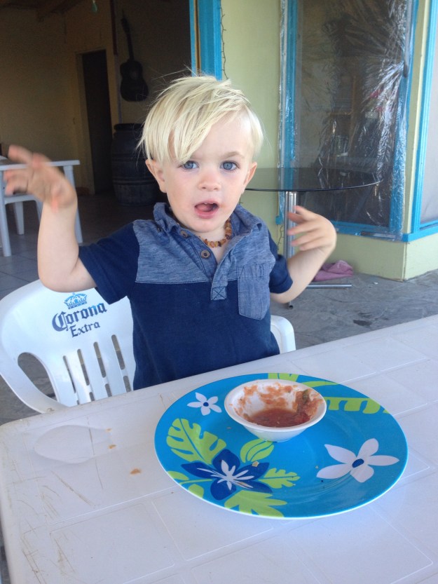 Over the next few days, we met up with our local friend, Diego and surfed. We found more activities to do with the other kid boats (Pelizeno, La Cigale, Lady Mary, Raftkin, Bajka and Dol Selene). We surfed more and went to more beaches and tortoise breeding grounds and huge lava tunnels. Saturday was a big day. There is a local farmers market that starts at 5am. A group of us got together at 6 and took a taxi there. We loaded up of fresh food for the crossing!