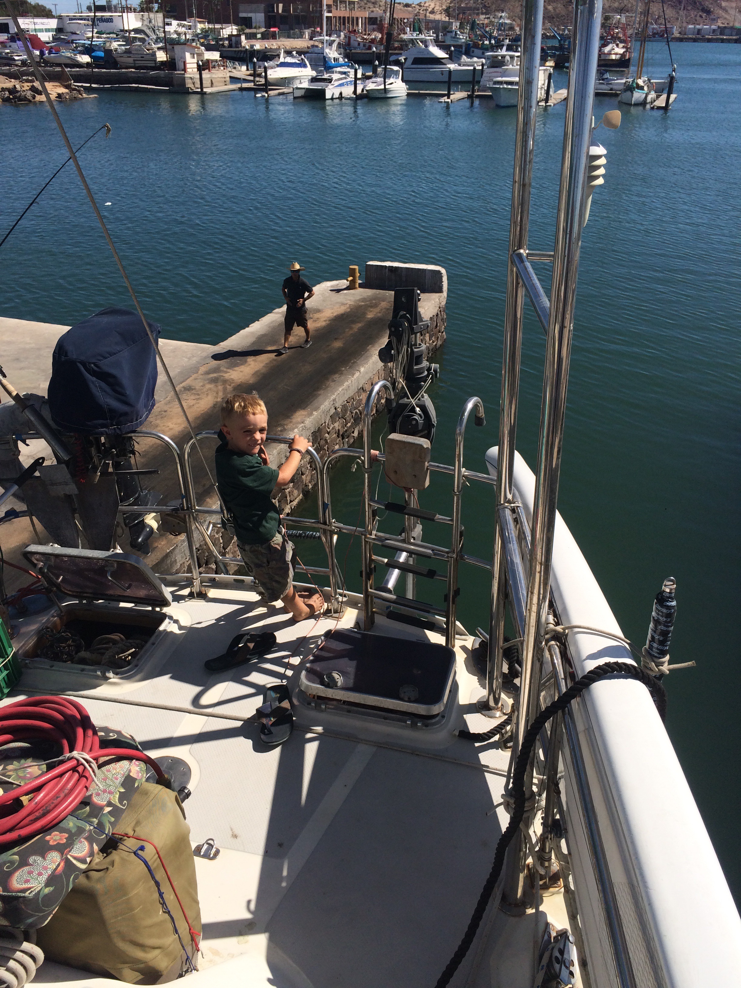 at this point Taj came down with a fever. It started low and didn’t seem like anything to be worried about, he usually gets a mild fever with his growth spurts. But as the day progressed so did his fever. His energy was zapped, he wouldn’t eat or drink and slept all day. By 2pm his fever reached 104.9! Parent panic started to kick in. We carry a bunch of first aid medication aboard. We already had started our “natural remedy” regimen, but it was clearly time for Advil. Within 45 min his fever started to decline and by 4pm it broke as he sweated it out profusely. We were, at this stage, on the fence about whether to head straight into Manzanillo, about 100 miles away at that point, or to continue on. It was extremely hard to make that choice. Deep down I felt like he would be fine, as long as we kept on our regimen. I had to resort to rectal doses, for he lost his desire for anything “tasting gross”. For the next 24 hours he was up and down in temperature, but never above 103, and his energy was up and down as well. He slowly had more desire to drink liquids and more desire for food. By the next afternoon, he was back to normal temp, back to reading with the girls, playing music and eating normal. Phew!!! We have no idea what the cause was, he had diarrhea, but nothing else.
