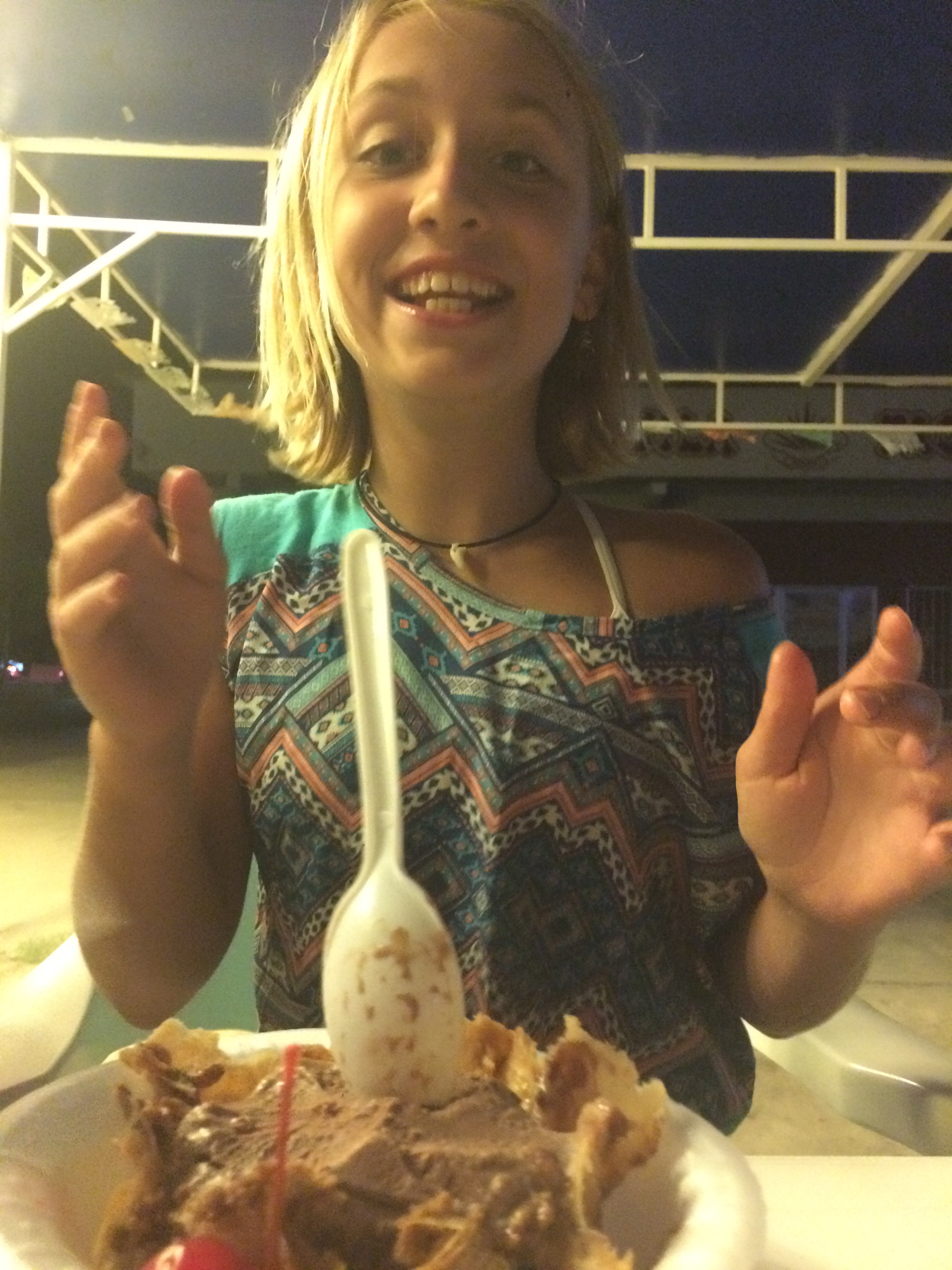 Taj kayaking in the water in Puerto Penasco (Rocky Point).The kids had fried ice cream the night before they set sail. A little treat before hot deserted seclusion for a few weeks.