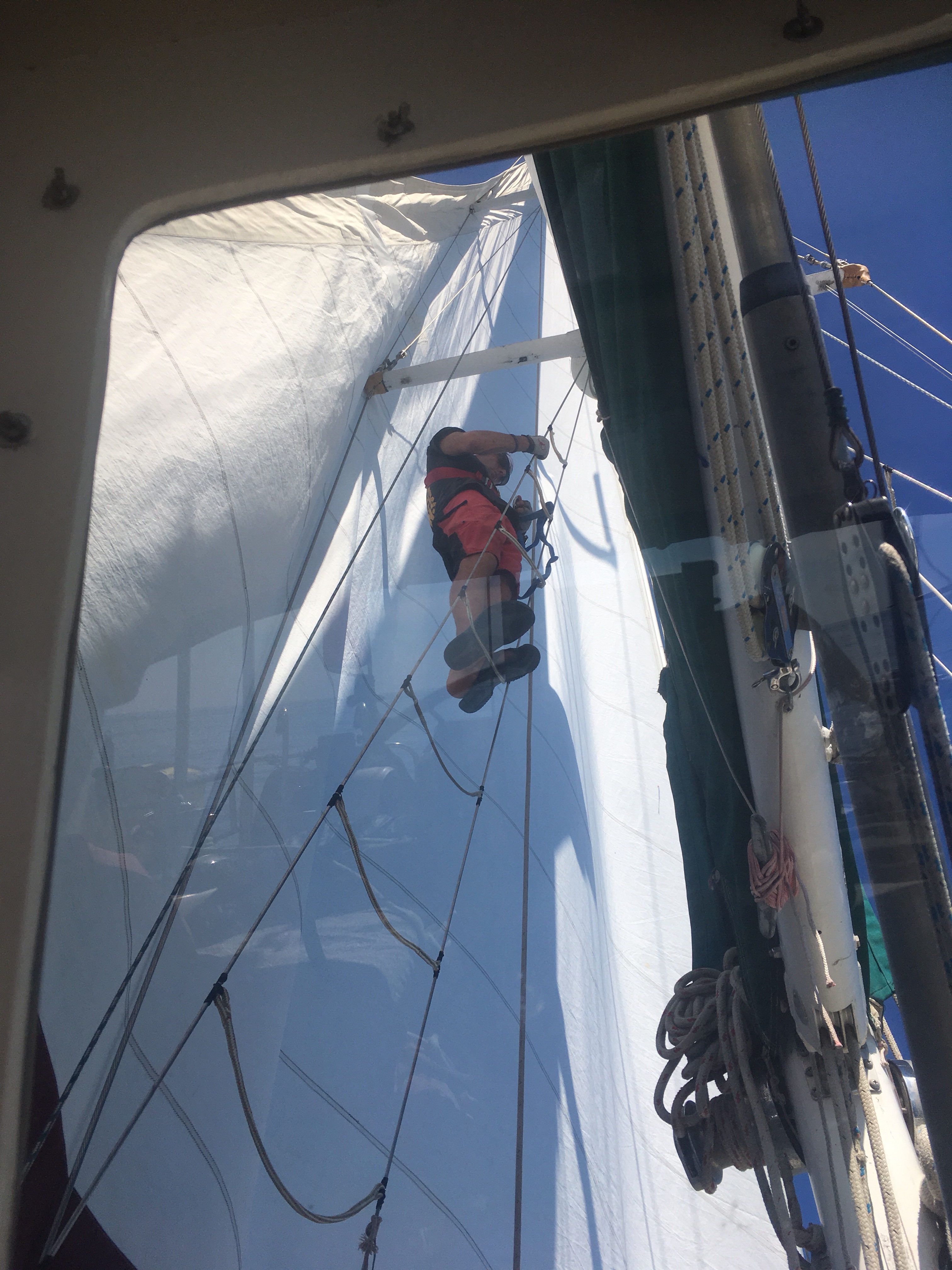 he first day. A little nausea among us ladies aboard, but nothing severe. My time below was limited, and not as much schooling was done as we hoped for. By day 2 we were well on our way to regaining our sea legs.