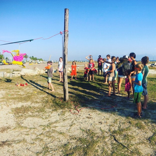 Christmas for the Orphanage: every Christmas season at Marina La Cruz people donate gifts for the local kids in the orphanage. Just after the New Year, the orphans are brought to the marina to participate in activities and have gift bags handed out to them. The bags themselves were made by various other sailors and with help from PV Sailing. Cookies were baked by fellow sailors, and gifts were bought and wrapped specially for each kid at the orphanage. The La Cruz Cruising Kids Club set up stations for various activities, such as face painting, makeup, perfume making, friendship bracelet making, and a table full of “archeology kits”. What a joy to see all the happy faces of these beautiful children. Most only spoke Spanish, so it was a great experience for our kids as well. Thanks Catrina at Marina La Cruz for organizing this!