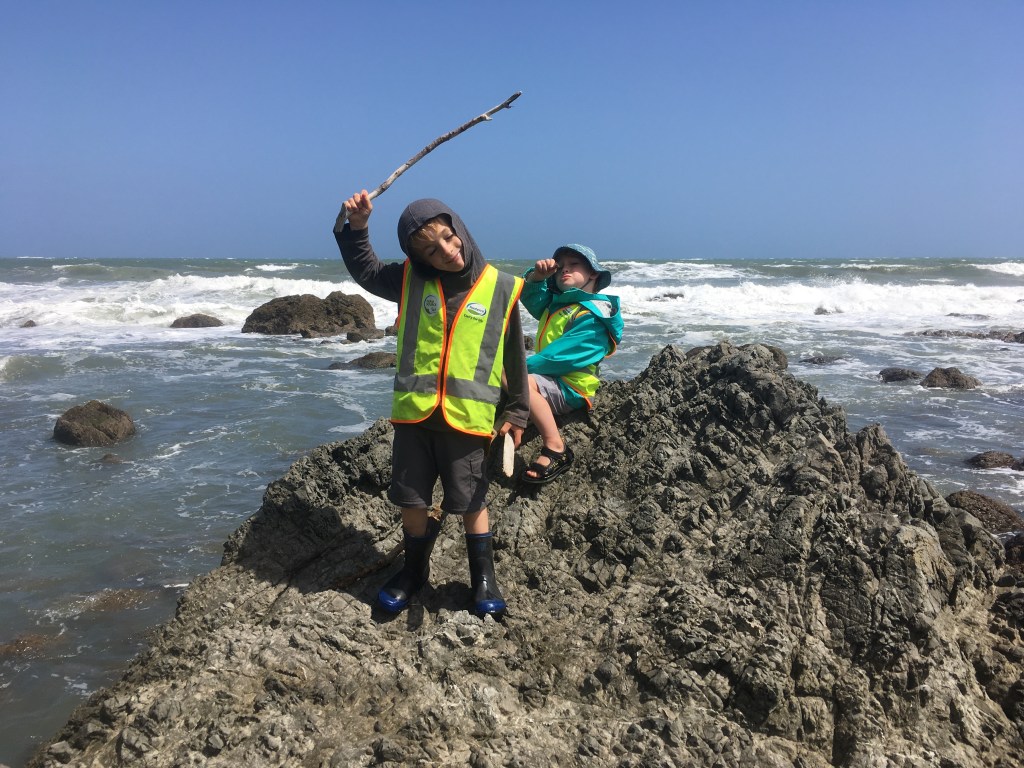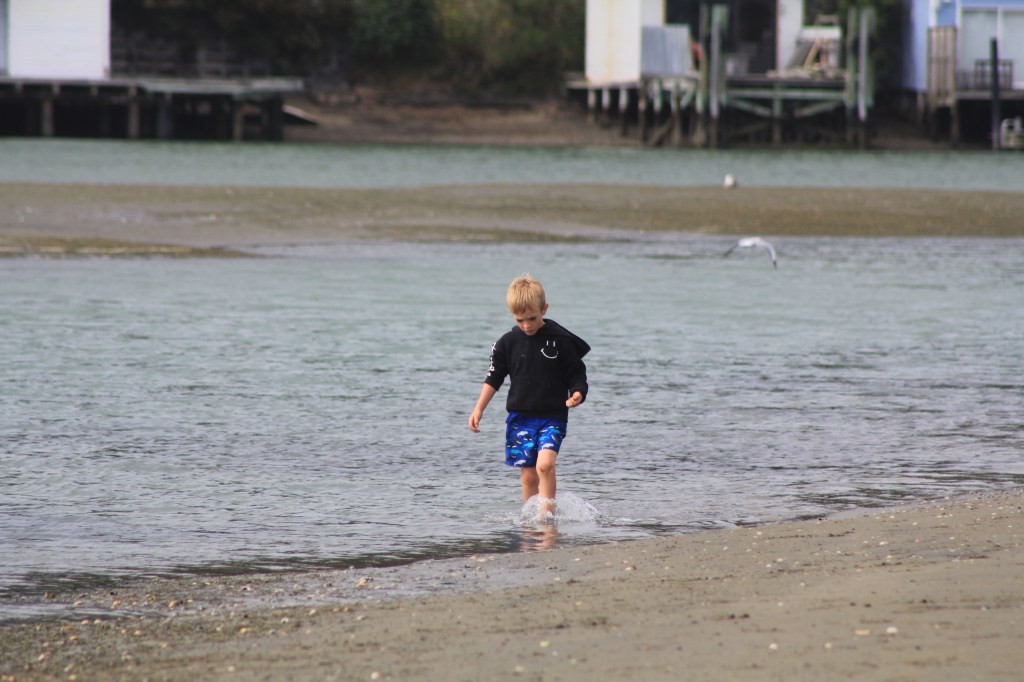 Kai Iwi – Mowhanau Beach. We wanted to stop here because we read about the shell fossils you can find in the rock and mud along the cliffs in one of Taj’s school books.