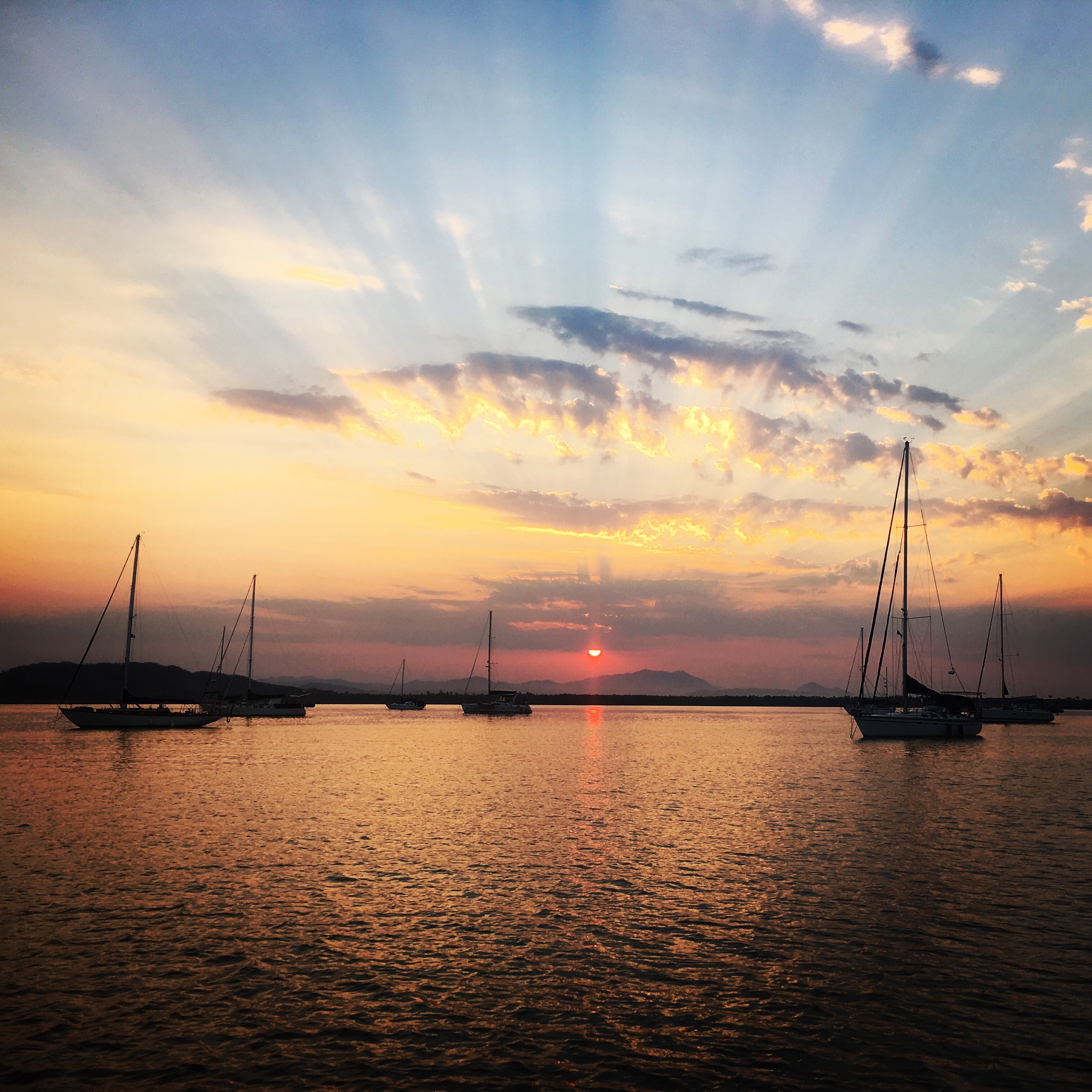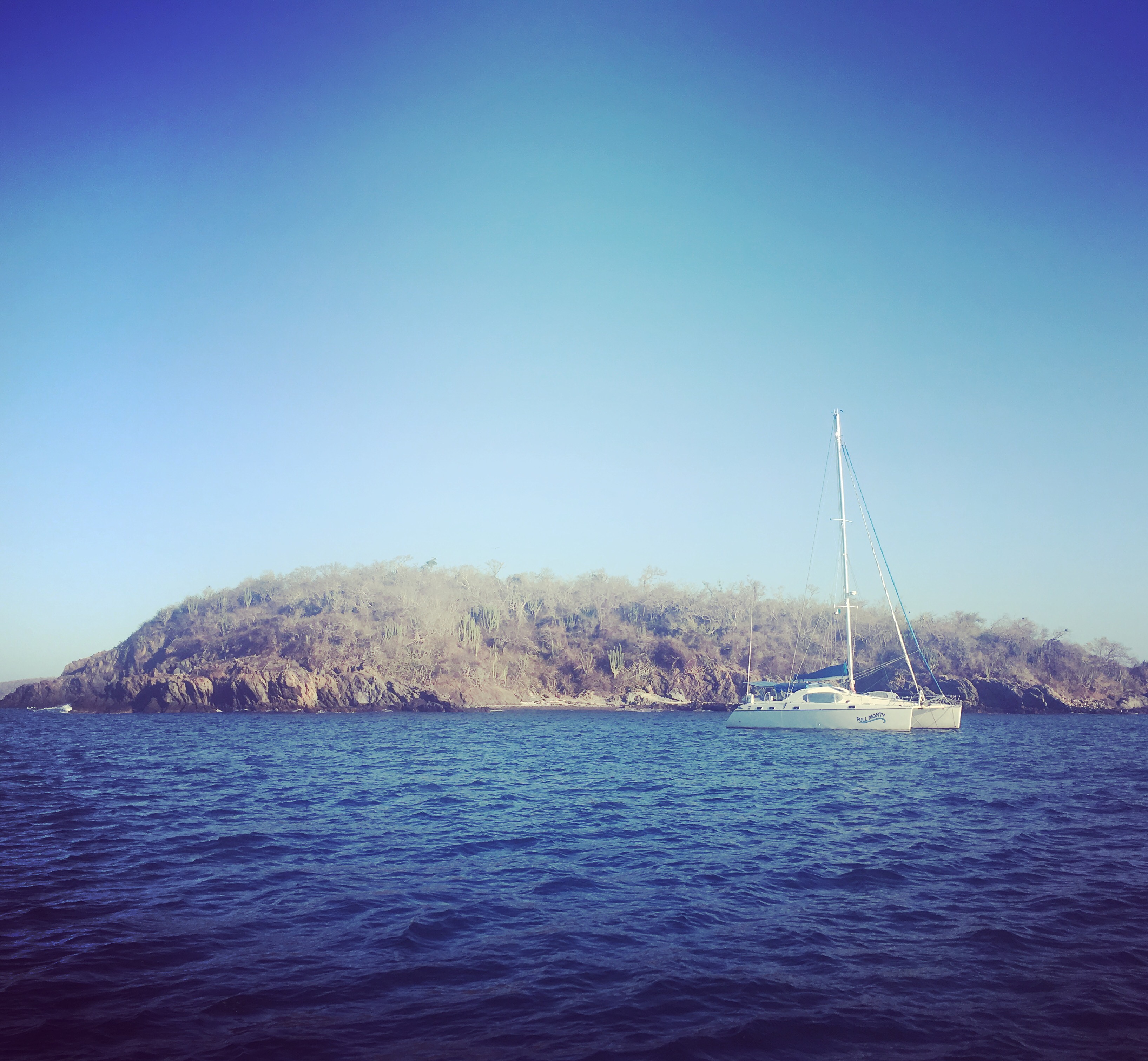 Meanwhile, we remained hopeful that health was ensuing after so much time. We set sail as soon as Christian retuned from his lab draw appointment. The overnight sail from La Cruz to Bahia Chamela usually takes around 20 hours with good wind the whole way, so leaving in the afternoon was perfect to get us there first thing in the morning. The sail was great! For a few hours that night with downwind speeds reached ~30-35 knots, we had a double reefed main and furled jib to 70%. The bioluminescence was brilliant. Dolphins swimming and playing around the boat, hearing their breaths and seeing floresence glow as they move through the water. We arrived in the anchorage off of Punta Pérula in Bahia Chamela at 0400. It only took us 16 hours!