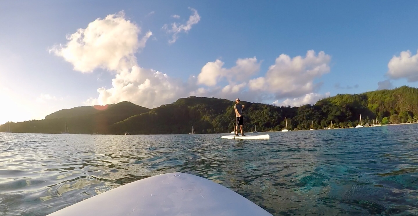 The Societies offer a combination of “atoll” and mountainous landscape. They are surrounded by a perimeter of reef, channels that are mostly navigable by boat are access through a pass, and there is where you take your boat to known anchorages off the volcanic islands. Huahine offered great views, clear water, great surf, paddle boarding and culture.